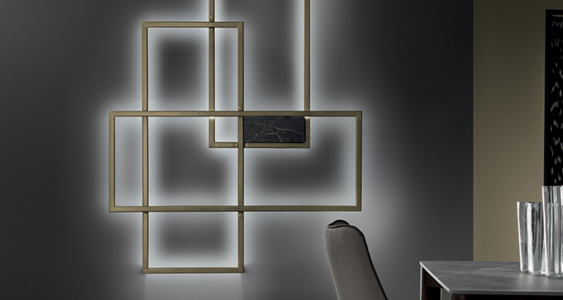 Avec son jeu de formes, la lampe donne de la lumière au mur et met en valeur l’espace comme une peinture abstraite. Il peut être positionné verticalement ou horizontalement pour créer des géométries différentes et lumineuses.