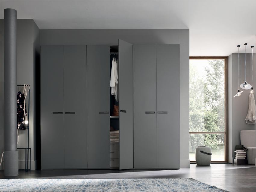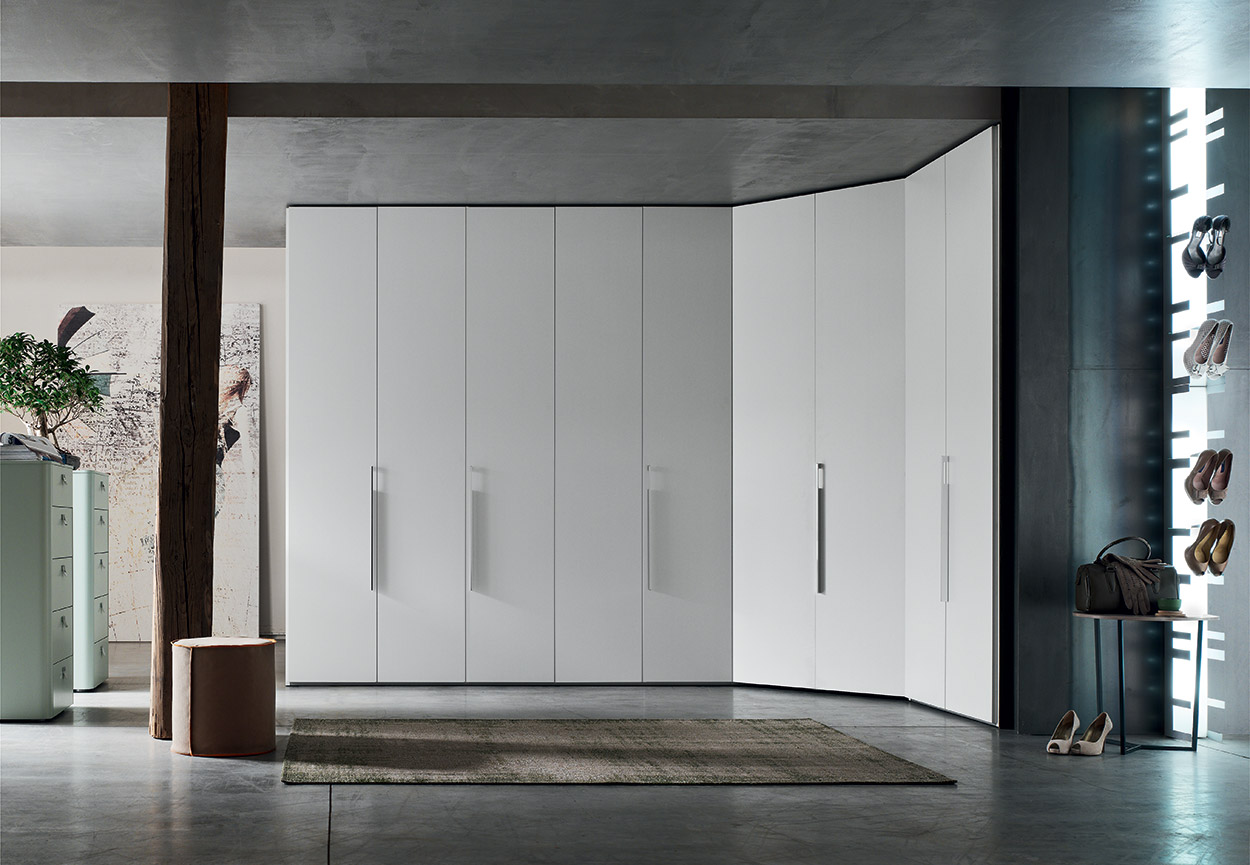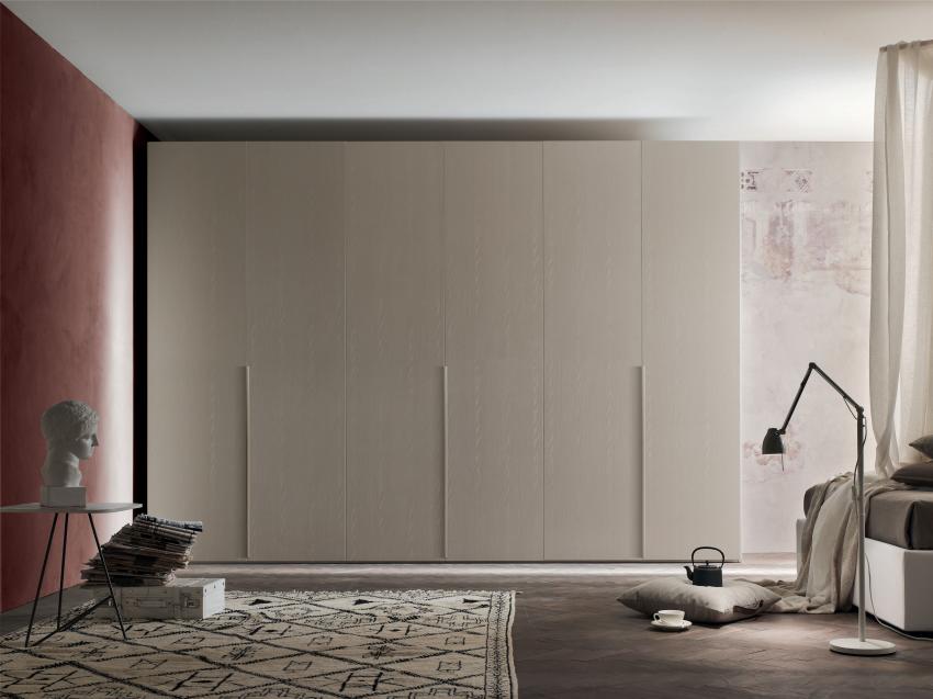 L’élégance est un subtil jeu de références pour un environnement conçu en combinant la garde-robe avec le lit suivant le même concept esthétique.