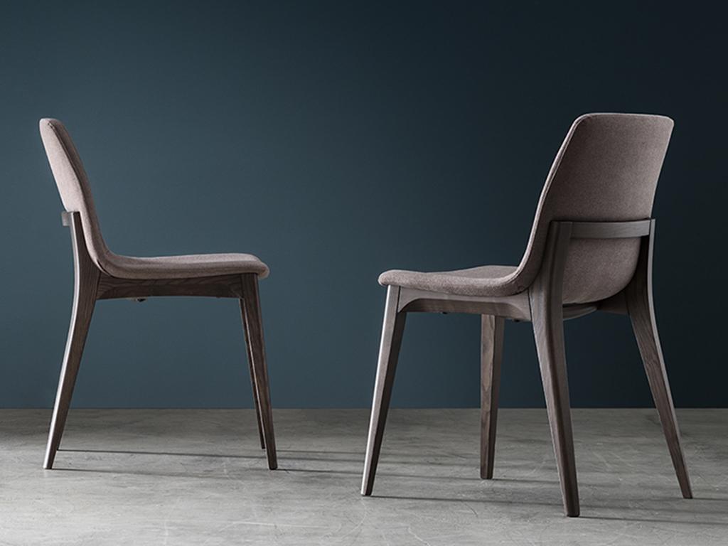 L’assise et le dossier sont une pièce unique : la forme ergonomique et confortable est accueillie par une structure en frêne massif, disponible en quatre teintes pour correspondre à différentes tables.