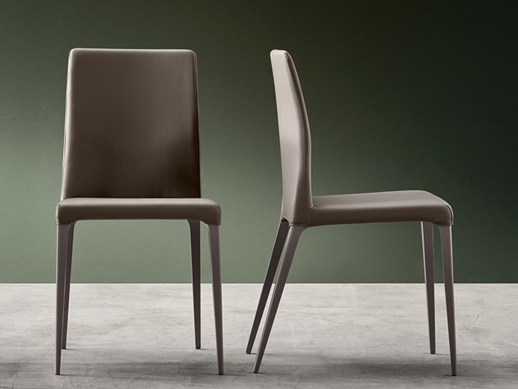 Les pieds avant droits et les pieds arrière inclinés : un détail qui permet de donner du mouvement au design et un style original à la chaise. Les différents revêtements correspondent à la structure.