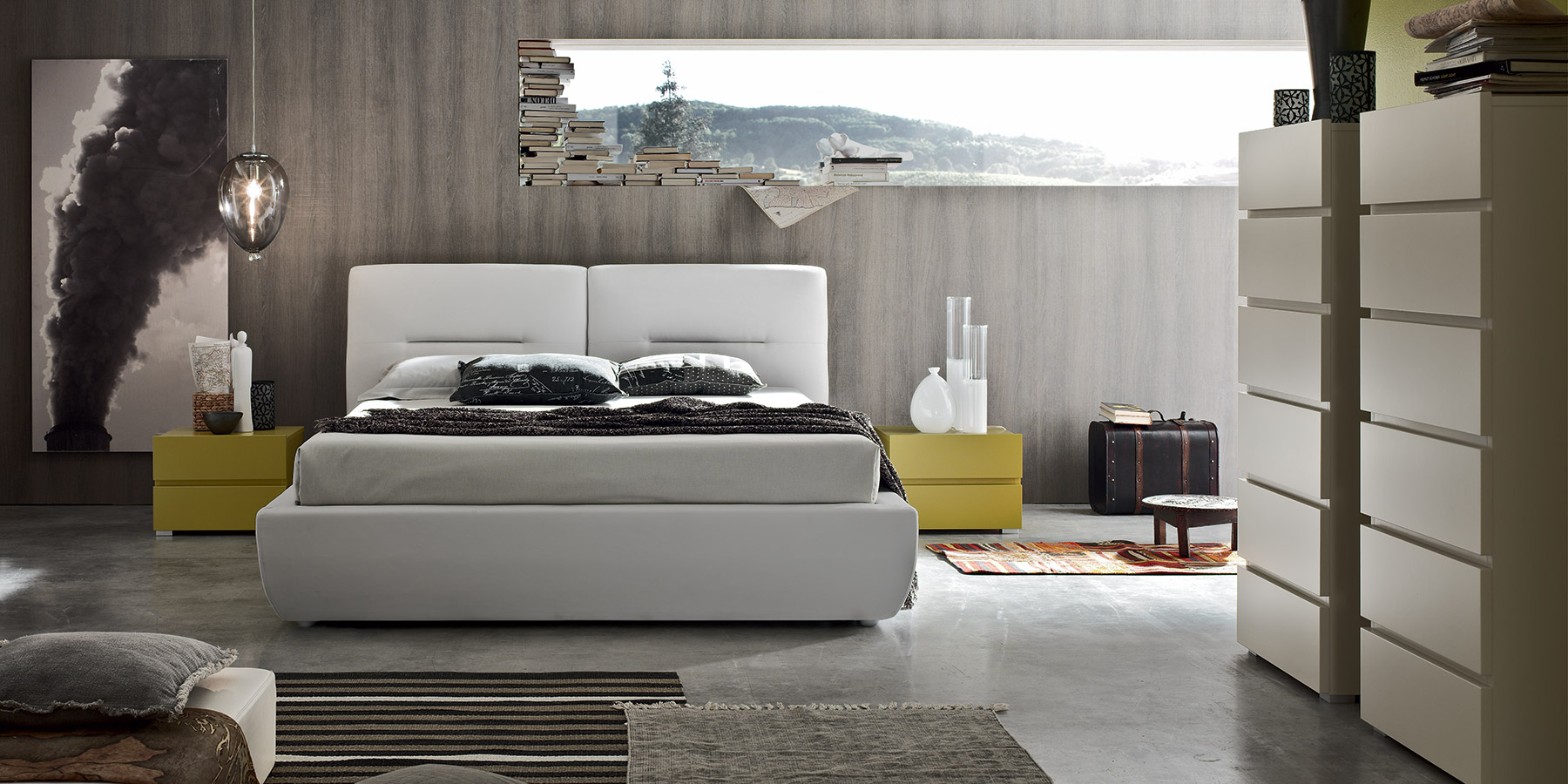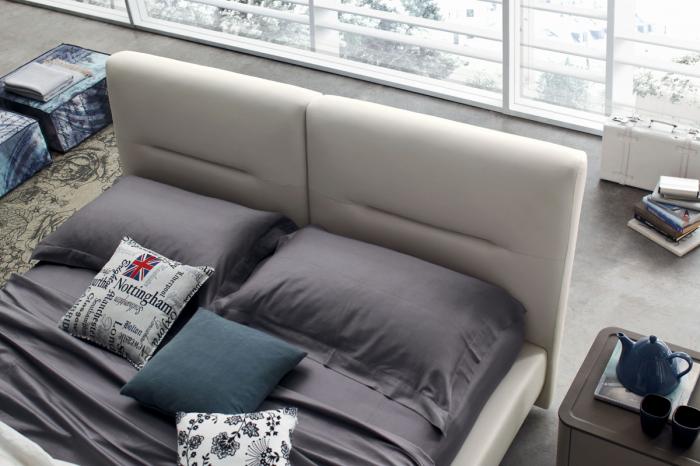 Les lignes droites rencontrent la douceur pour un lit glamour