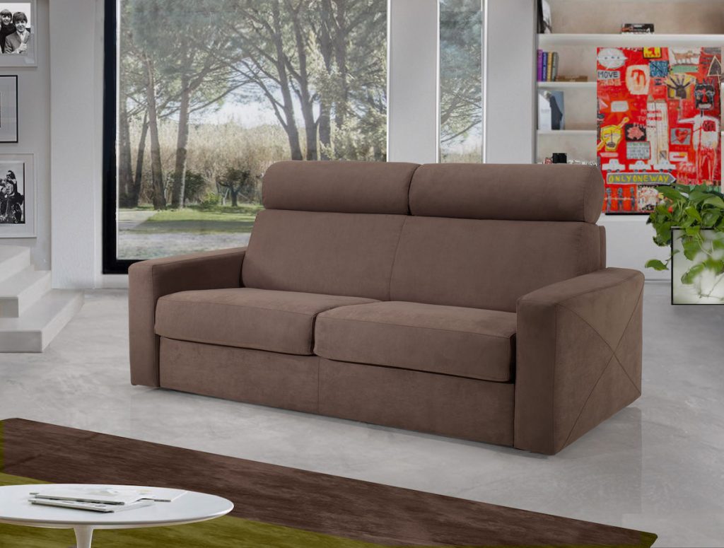 Enfin, la caractéristique du plain lit qui ne se détache pas du dossier, assurant ainsi un encombrement minimum lorsque le lit est ouvert, représente la solution idéale pour exploiter les espaces limités. Complètement déhoussable.