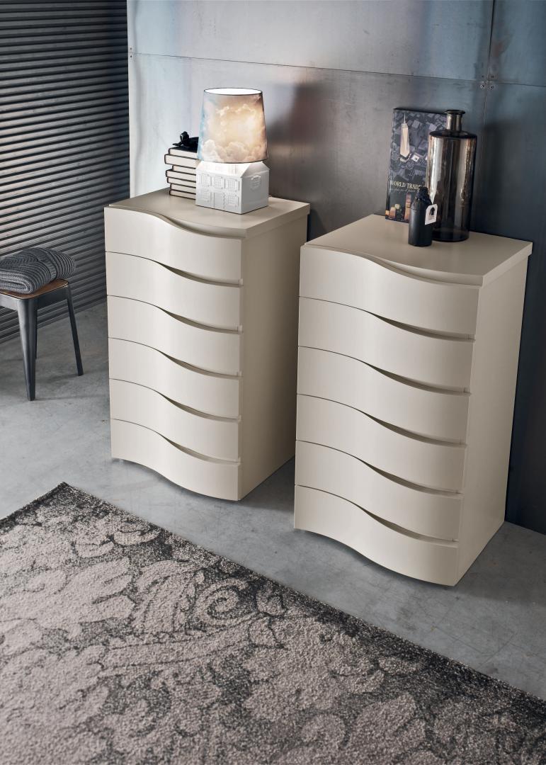 Ses lignes ondulées et sinueuses caractérisent le groupe. La forme décorative des façades crée des renfoncements qui deviennent une poignée.