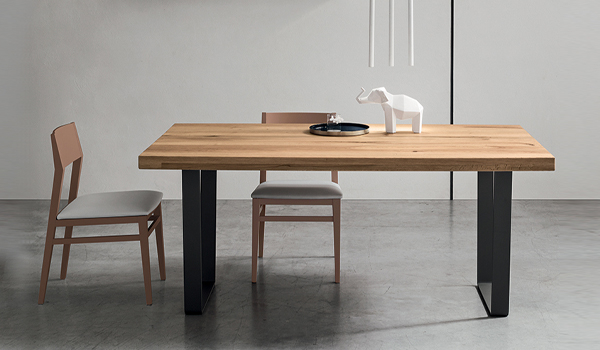 La table peut être fabriquée en bois, couleurs neutres, effets de marbre et de béton, chêne et frêne massif et est disponible en trois longueurs différentes.
